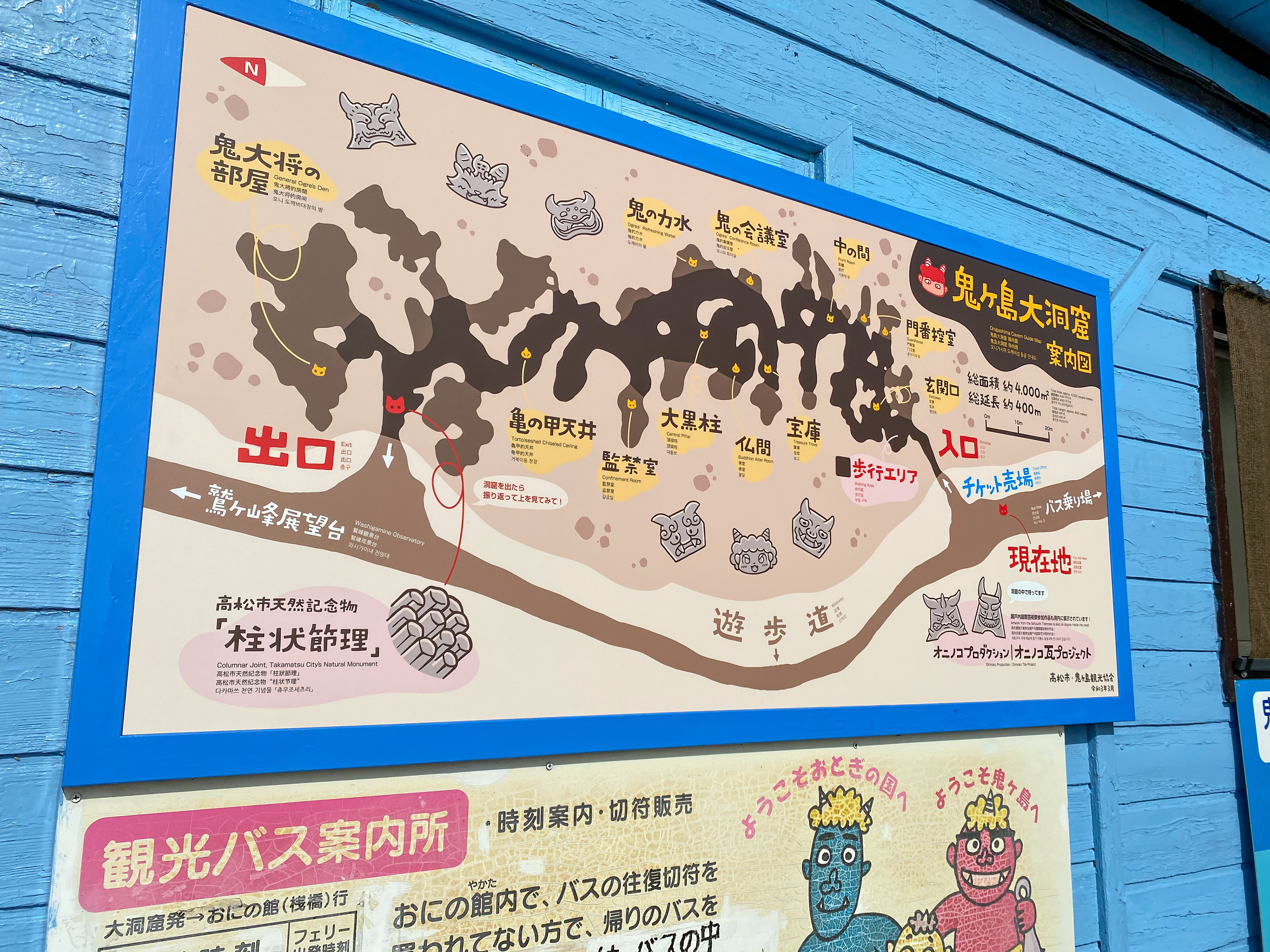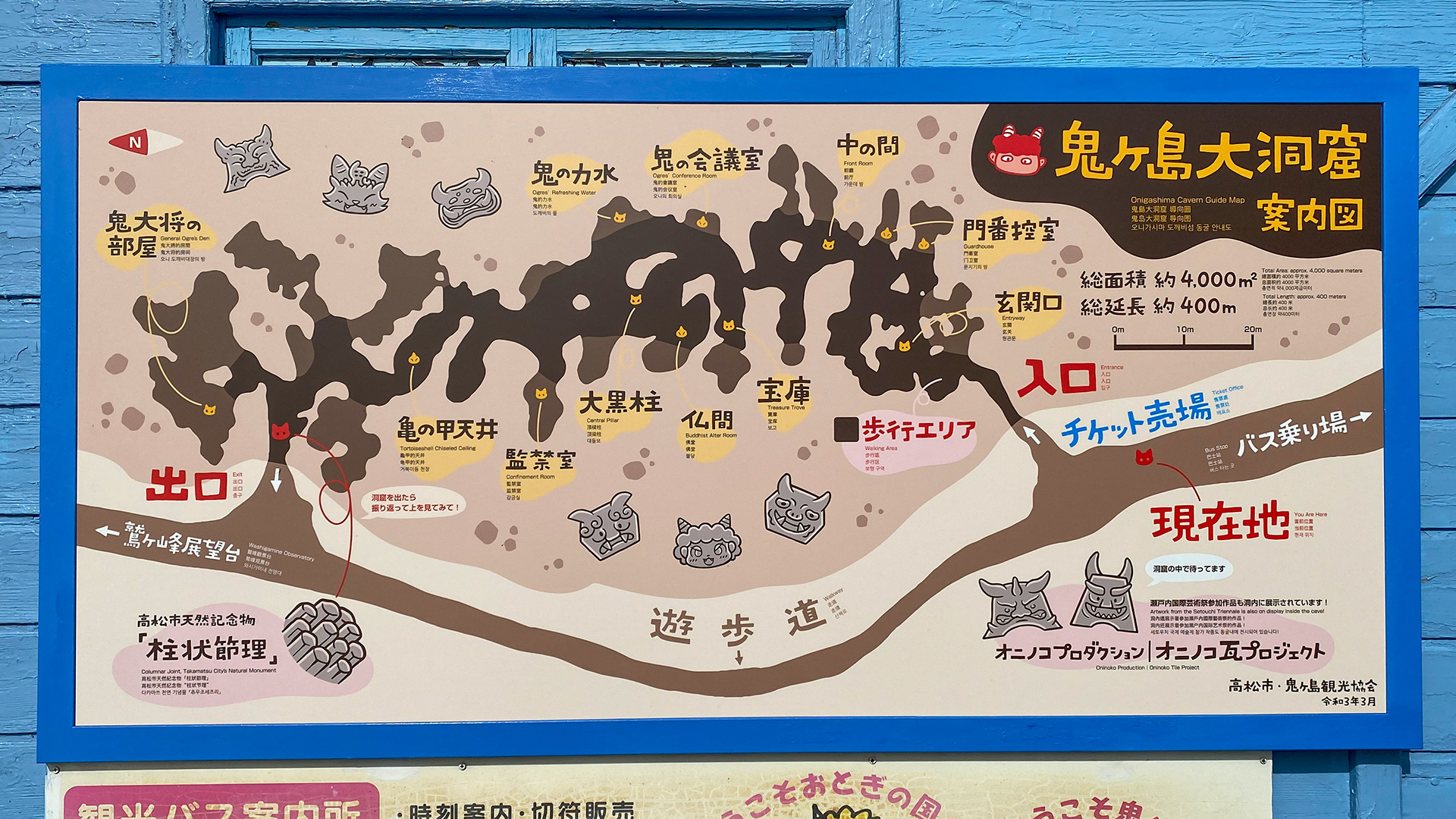 当洞窟は高松市内の幼稚園・小学校の遠足での利用や、外国人観光客も多いため、親しみやすく分かりやすいデザインを心がけました。