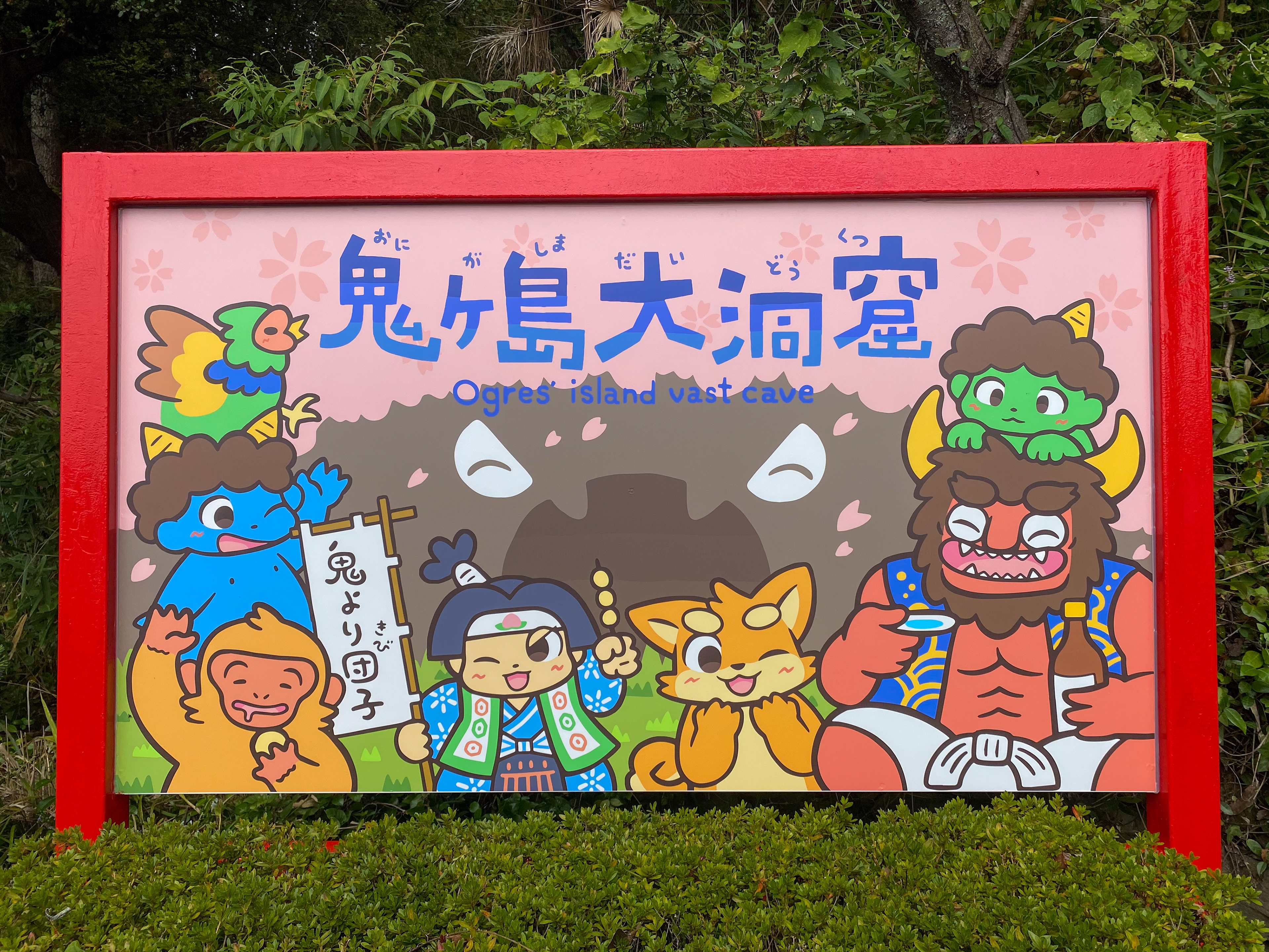 香川県高松市の沖合の島「女木島(めぎじま)」にある観光地・「鬼ヶ島大洞窟」の洞窟入口看板を制作させて頂きました。