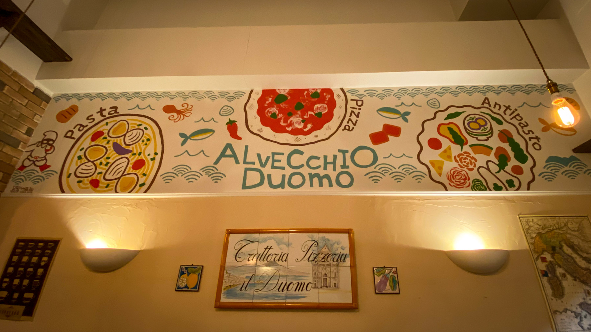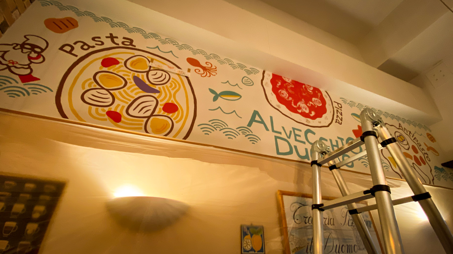 I painted a mural for the interior of the Italian restaurant "AL VECCHIO Duomo" in Takamatsu City, Kagawa Prefecture. I painted a public production in front of customers during the restaurant's business hours.