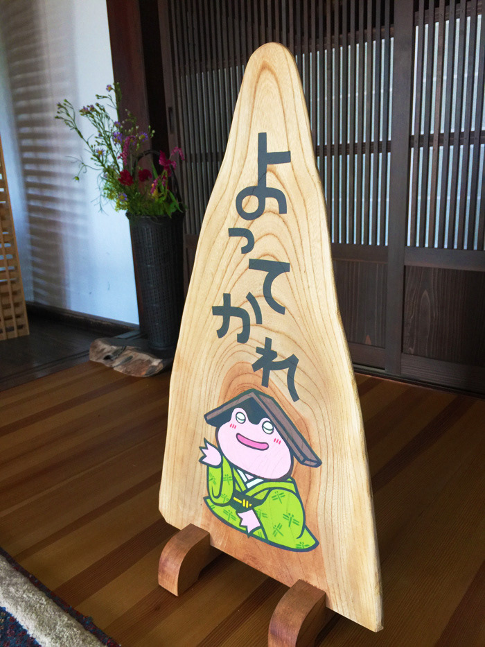 玄関では竹藤狐の手描きの看板がお迎えします。